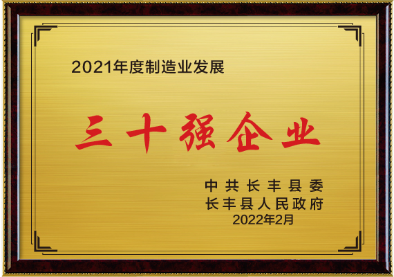 長(zhǎng)豐縣制造業(yè)發(fā)展30強(qiáng)2022-03-02