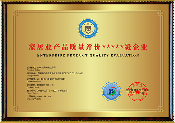家居業(yè)產(chǎn)品質(zhì)量評(píng)價(jià)★★★★★級(jí)企業(yè)2024-04-11