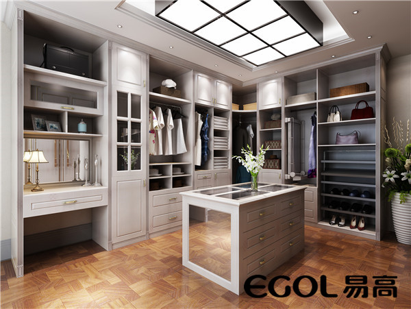 合理人性化的功能分區(qū),便捷實(shí)用,為媽媽免去衣物收納之憂。為媽媽定制這樣一款簡(jiǎn)歐衣帽間,儲(chǔ)存青春、留住美麗。