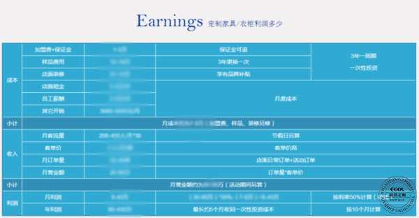 說到賺錢,利潤肯定是最主要的。按照易高定制家居近期統(tǒng)計的150㎡店面正常情況下的利潤大概在8萬以上,具體的也可以點擊圖片查看詳細(xì)計算方式。 開店大大小小的注意事項非常多,一些沒有涉足過創(chuàng)業(yè)的上班族來說,如何辦理營業(yè)執(zhí)照、稅務(wù)登記、店面裝修等也會是較為復(fù)雜的問題,易高定制家居對于每一位加盟商有專業(yè)加盟經(jīng)理一對一負(fù)責(zé),實時解決創(chuàng)業(yè)者后顧之憂。