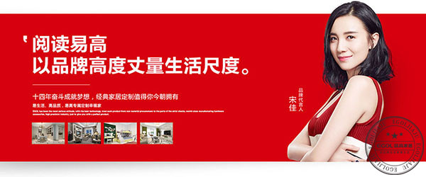 選好加盟全屋定制品牌,最先看的就是品牌知名度。除了被消費者知曉接受并影響選擇的決策之外,對于樹立品牌形象也有非常積極的推動作用。易高家居邀請著名影星宋佳為其代言。央視、機場、高鐵、高速、網(wǎng)絡(luò)等媒體進行多維度品牌傳播更是提高了易高家居品牌知名度。