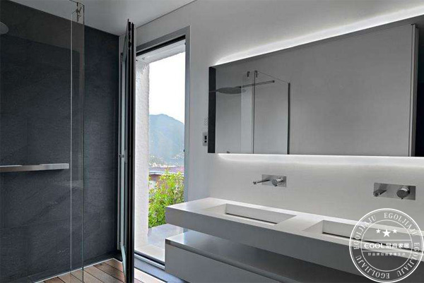 1. 衛(wèi)生間洗漱臺設(shè)計。清晨起床大多都會先進(jìn)行一番洗漱,人數(shù)較多的家庭一般都會選擇排隊挨個進(jìn)行,甚至有些家庭因為實在來不及選擇在廚房或者陽臺洗漱。針對這種情況,在裝修時我們可以定制帶有兩個洗漱盆的洗漱臺。兩個小小的洗漱盆和兩個水龍頭,可以兩個人同時使用,既不會浪費(fèi)空間,又能減少整個家庭排隊洗漱時間。在洗漱臺上可以選擇定制鏡柜,這樣就在解決整理儀容問題的同時,也解決了全家成員牙膏牙刷護(hù)膚等個人用品的收納問題。另外,在鏡柜的上方建議安裝鏡前燈。經(jīng)常在衛(wèi)生間化妝的女士應(yīng)該都知道,照鏡子時,頂上的燈光剛好被人體擋住,有了鏡前燈,不管是女士們化妝還是男士剃胡須,都會更加方便。