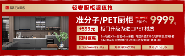 為最大程度貼合消費者需求,易高家居特別推出省心省力的品質全屋套餐,不到4萬入戶、廚房、客廳、餐廳、陽臺、臥室、書房全屋7大空間柜體輕松搞定!更送7㎡現代櫥柜、時尚護墻板、芝華仕等大牌家居...易高始終對品質有著更高的追求,活動期間可為你免費升級激光封邊門板和防潮水槽柜,無縫貼合、環(huán)保、防潮、耐黃變等優(yōu)點可延續(xù)家具使用壽命,雙重升級穩(wěn)穩(wěn)守護你的家。