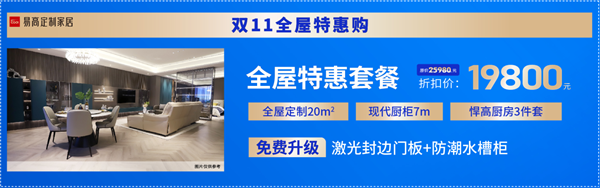 金九銀十的家裝消費旺季,很多業(yè)主開始各種跑建材市場。為了喜迎雙11,易高家居讓利廣大消費者,于10月11日-11月11日重磅推出799元/㎡柜體定制特價活動,更有配置完善的整家套餐,軟裝、柜體、家電一站式配齊,幫你打造省錢又省心的整家解決方案!