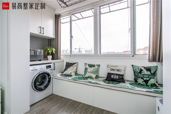 陽臺還可以定制陽臺柜,設(shè)計成內(nèi)嵌式的,可以放置洗衣機或者烘干機,提高了定制柜的利用率,整體空間呀看起來更加整潔和諧。烘干機的安裝也為生活帶來了很多便利。不用擔心天氣不好晾衣服不干,對衣物還有高溫烘干,殺菌消毒的功效。