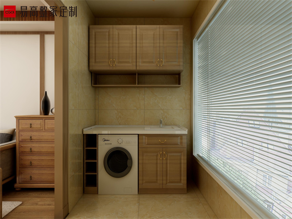 定制收納柜加上內(nèi)嵌式洗衣機柜或者拖把池,可以收納一些家務(wù)用品等。不用擔心雜物亂放影響整體的美觀性。都收納在柜子里視覺效果更加美觀,設(shè)計時還可以放底板上放置防水墊,以免水珠侵蝕定制柜的板材。