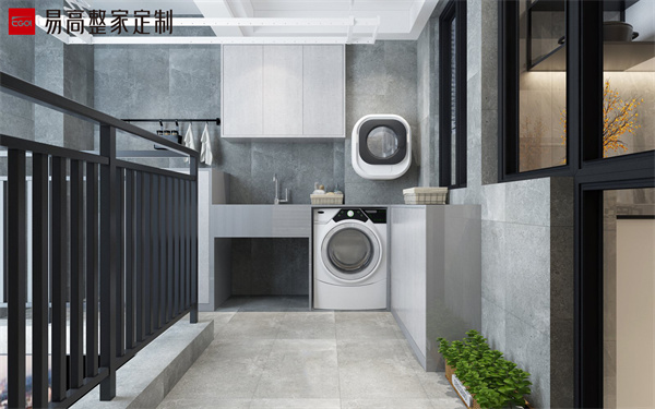 一般的陽臺都會考慮放置洗衣機,作為晾曬衣物的區(qū)域,但這樣簡單的規(guī)劃很有可能導致陽臺空間的閑置。其實可以考慮將陽臺定制一個地柜、吊柜以及洗手臺的組合設(shè)計,洗衣機可以收納在洗手臺下面,平時除了晾曬衣物,還可以收納家務(wù)用品,非常的實用。非常簡單的設(shè)計,洗手臺可以洗雜物。洗完衣服可以直接在陽臺上晾曬,減少了晾衣服的動線,非常便利。