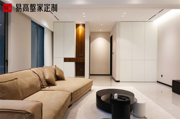 細節(jié)處理直接影響衣柜的美觀和實用性。例如,頂封板應(yīng)內(nèi)置,避免外露;左右封板應(yīng)與柜體同厚,避免太寬影響美觀;為了整體美觀,柜體露出的側(cè)面應(yīng)加門板同色的見光板;柜門建議使用極簡的長拉手或無拉手設(shè)計,如內(nèi)置反彈器,以體現(xiàn)極簡風(fēng)格。
