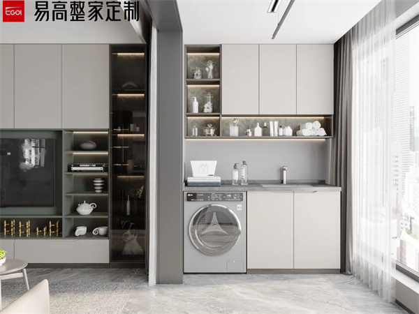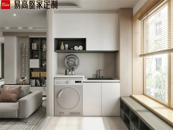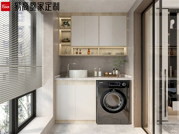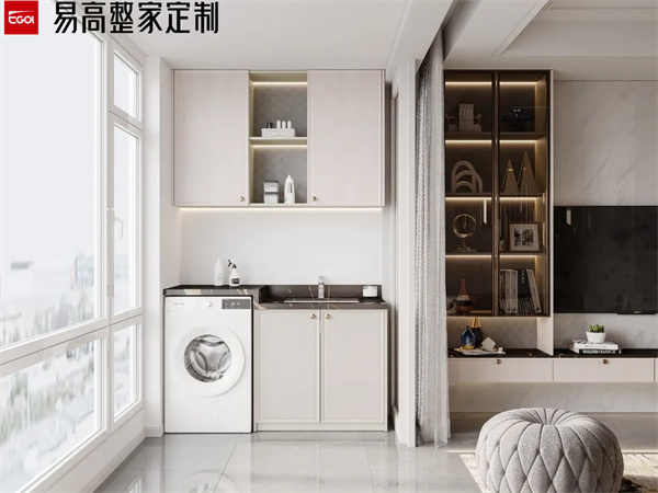 陽臺(tái)屬于長(zhǎng)期風(fēng)吹日曬的區(qū)域,做陽臺(tái)柜一定要注意抗曬和防水問題。避免長(zhǎng)期陽光直射導(dǎo)致柜門發(fā)黃、開裂等。同時(shí),陽臺(tái)柜的臺(tái)面也要做好防水處理,避免水漬滲入導(dǎo)致?lián)p壞。洗衣柜的材質(zhì)要選擇防潮性能好的材料,比如磚砌洗衣臺(tái)或石英石臺(tái)面等,這些材料不僅防腐耐潮,還能抗曬。