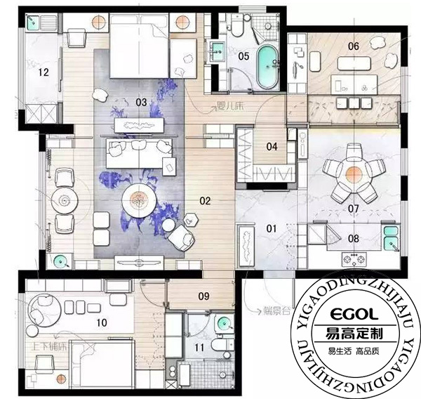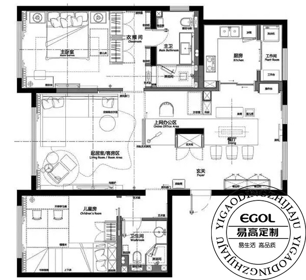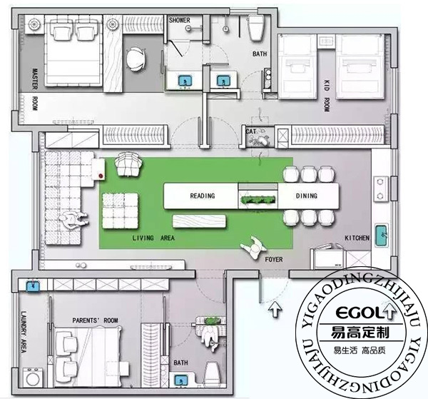 定位為私宅,家庭成員:夫妻+2個(gè)女兒(大女兒5歲,小女兒1歲),兩位老人偶爾來(lái)住,有書(shū)房功能。