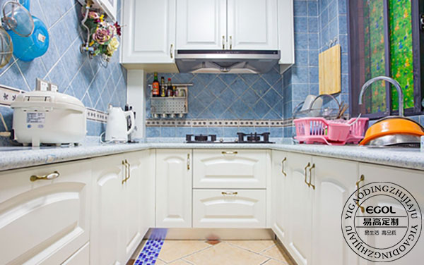 L字型廚房的兩邊至少需要1.5米的長度,其特色就是將各項(xiàng)配備依據(jù)烹調(diào)順序置于L型的兩條軸線上。但為了避免水火太近,造成作業(yè)上的不便,最好將冰箱與水槽并排于一直線,而爐具則置于另一軸線。如果想要在烹調(diào)上更加便利,可以在L型轉(zhuǎn)角靠墻的一面加裝一個(gè)置物柜,既可增加收藏物品的容量,也不占用平面空間;也可在L型的軸線上繼續(xù)延伸,設(shè)計(jì)一個(gè)可以折疊或拉出式的置物臺面,平時(shí)不用時(shí)可收起,待烹調(diào)料理多時(shí)再開啟使用。