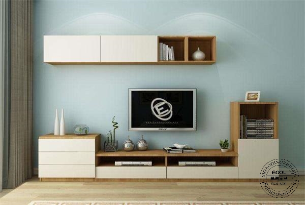 吊柜與地柜組合的電視柜樣式多變,實用與美觀兼?zhèn)洌e落有致的吊柜與地柜組合是小戶型非常好的選擇,比單一的地柜收納空間增加更多,也能作為電視背景墻的裝飾之一。目前不少消費者傾向組合電視柜。