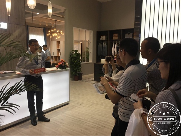 易高家居所在的保利世貿(mào)博覽館2E27展位,吸引了來自全國各地的客戶前來參觀體驗、咨詢合作。
