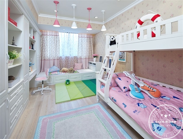 ▲同樣是休息與學(xué)習(xí)一體的空間,轉(zhuǎn)角書(shū)桌的設(shè)計(jì)簡(jiǎn)約舒適,環(huán)保板材定制,為孩子們打造一個(gè)健康的成長(zhǎng)環(huán)境。