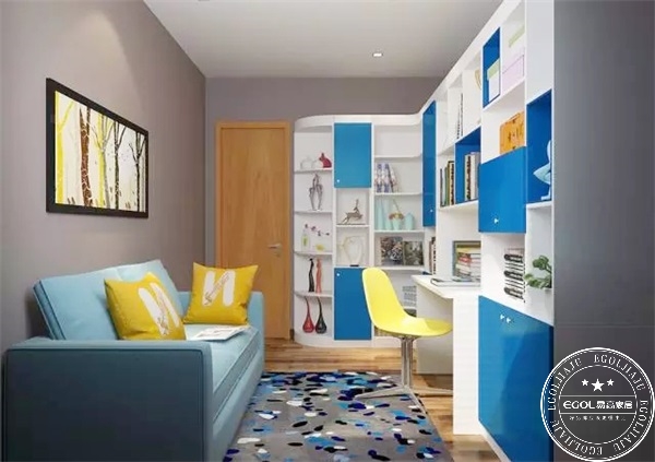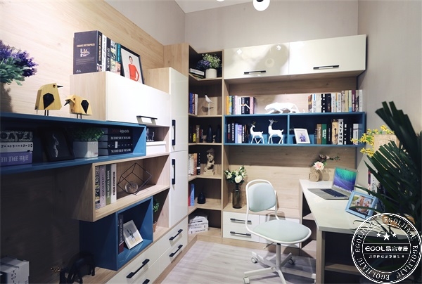 幼兒時(shí)期通常是書(shū)房和房間一體,這時(shí)候多開(kāi)發(fā)孩子腦洞,培養(yǎng)孩子的色彩感知能力和動(dòng)手能力,因此書(shū)房空間自然采光要充足,色彩搭配合理,把創(chuàng)造快樂(lè)空間的主動(dòng)權(quán)交給孩子。