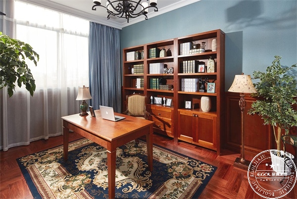 ▲伯格莊園系列書(shū)房,整體紅橡木本色,色彩濃郁,呈現(xiàn)出一種古典美感。伏案覽書(shū),別有滋味。