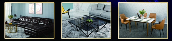 B、現(xiàn)代簡約皮質(zhì)沙發(fā)+簡約茶幾+輕奢風(fēng)餐桌椅