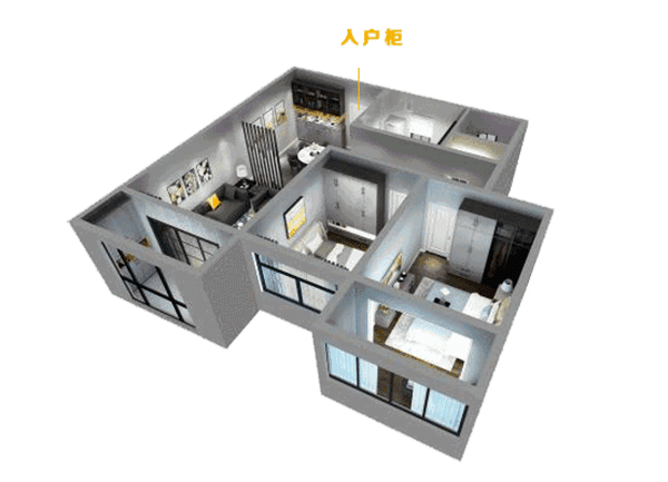 此戶型包含2個臥室柜,1個入戶柜,餐廳酒柜、客廳電視柜、陽臺柜,更有廚房3平方米的地柜+1平方米的吊柜家具,柜體總面積約22平方米。此外,還可享受一體化設(shè)計、裝修全流程服務(wù),讓有裝修需求的家庭享受到質(zhì)高價優(yōu)的全屋定制服務(wù)。