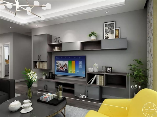 客廳的裝修關(guān)鍵詞是寬敞、實用,可以通過打造電視墻儲物柜擴展空間,給人清爽、明亮的感覺。