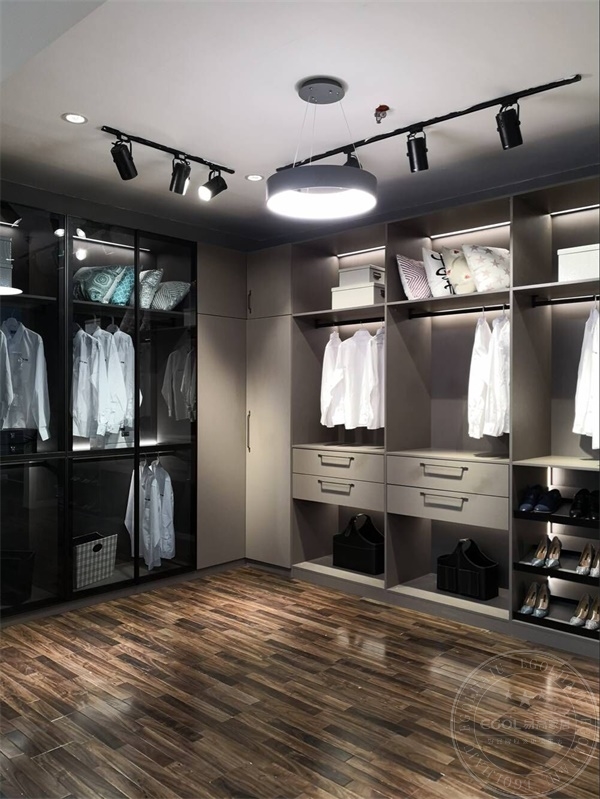 ▲開放式衣帽間:合理利用空閑的墻體為依附,分區(qū)規(guī)律,可以帶給人們最寬廣的視野。