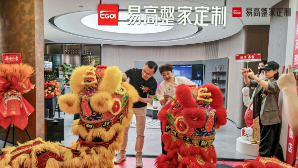 在熱鬧非凡的舞獅環(huán)節(jié),易高家居董事長孔慶松和上海松江高定旗艦店總經(jīng)理王艷超一同為醒獅點睛開運,隨后嘉賓代表齊剪紅綢,宣告新店正式起航!