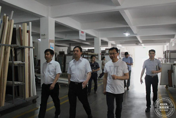 長(zhǎng)豐縣副縣長(zhǎng)石磊(左二)蒞臨 易高定制家居視察工廠